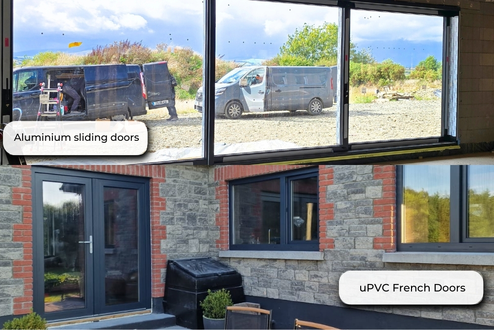 On the other hand, aluminium sliding and French doors are usually selected for projects that focus on design. Due to the strength of aluminium, the frames can be slimmer and still hold large glass panels. This makes them great for wide openings, modern extensions, and garden rooms where you want more daylight and a clean look. This material is also very durable and weather-resistant, making it a good long-term choice for Irish properties.